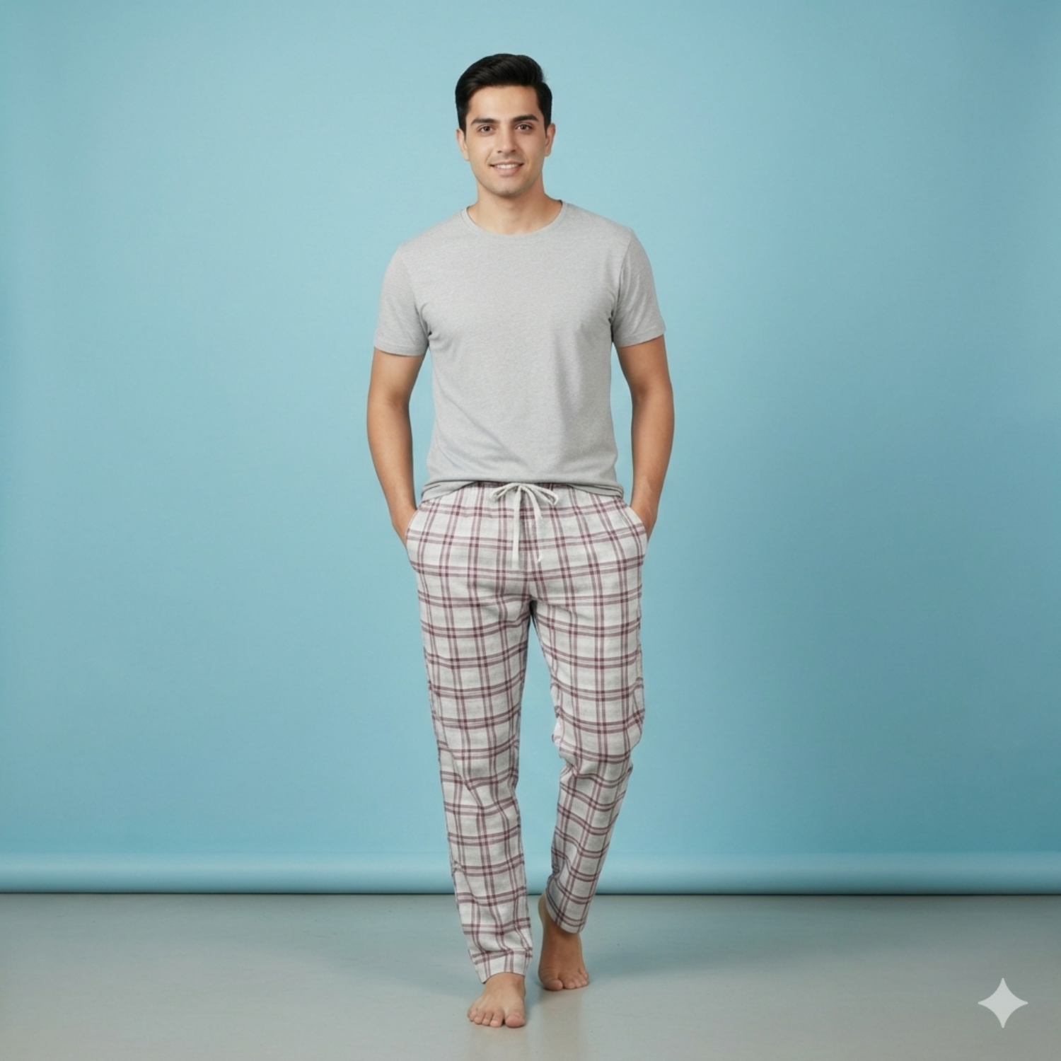• Men’s Wooven Cotton Trouser (GreyBurgundy)