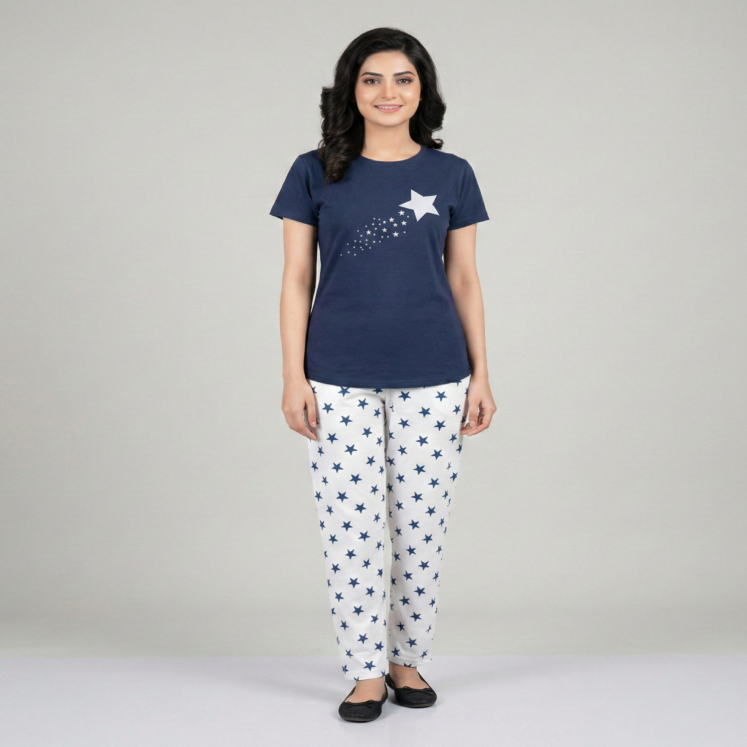 • Women Cotton Jersey Night Suit (Blue)