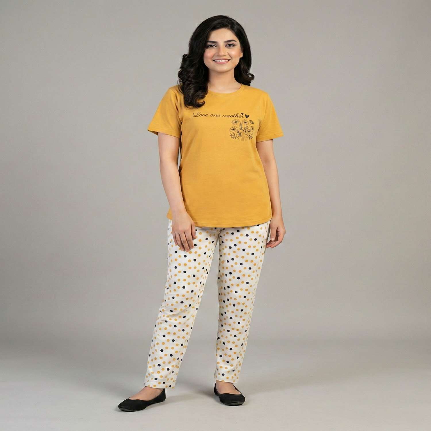 • Women Cotton Jersey Night Suit (Mustard Yellow)