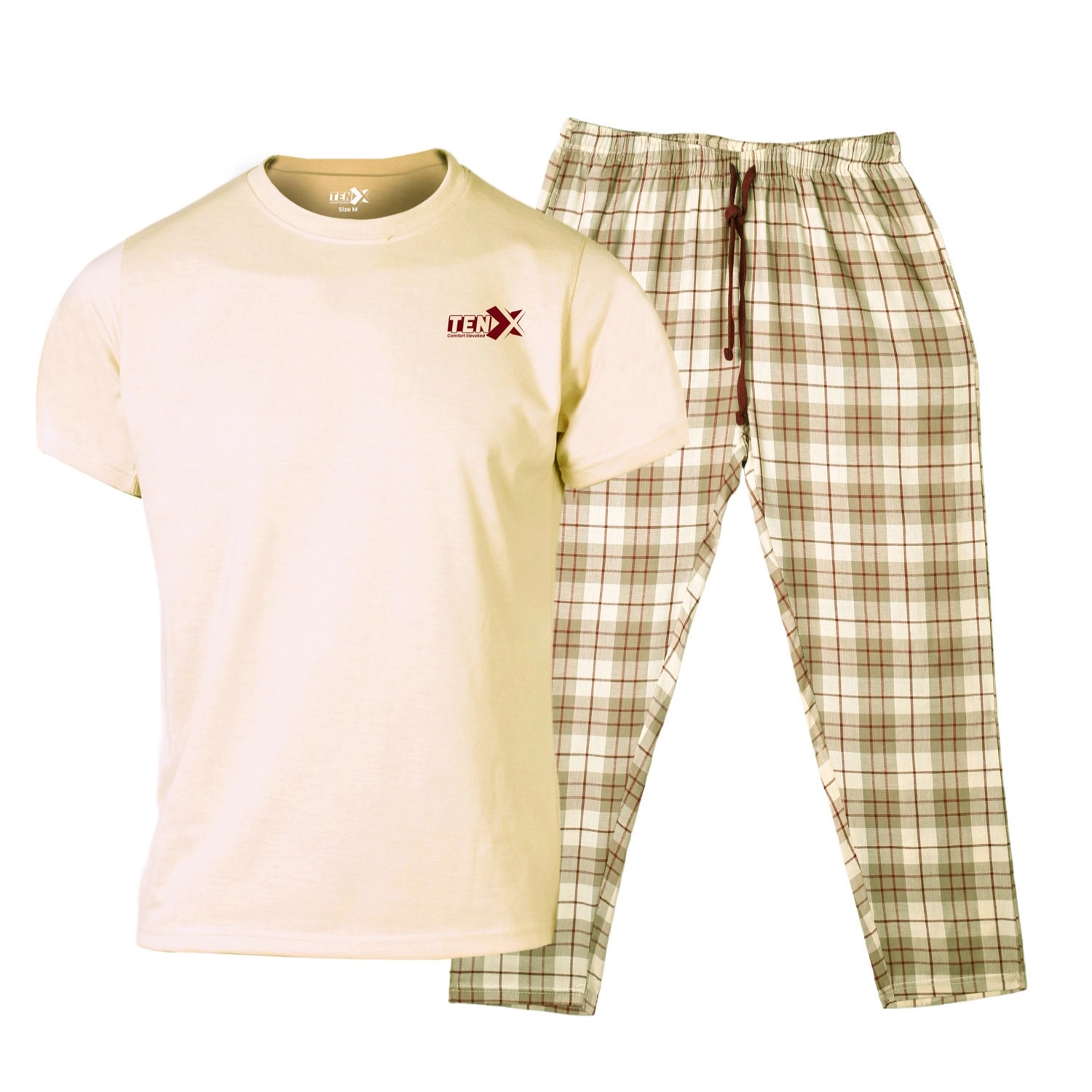 Men’s wooven Cotton Pajama Suit (Beige)