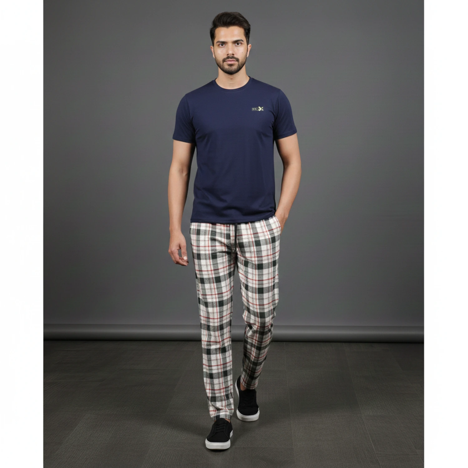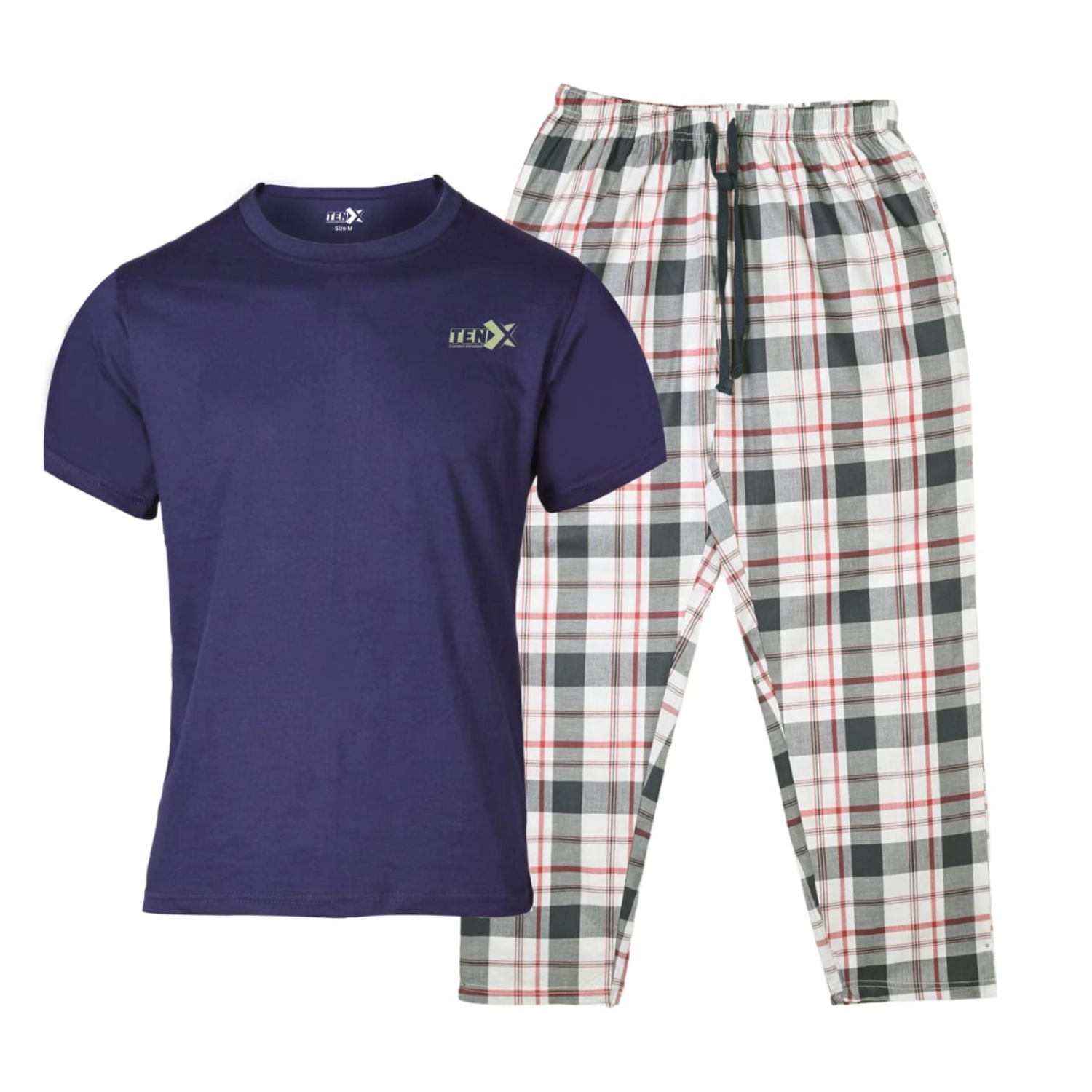 This mens woven cotton pajama suit is designed for everyday loungewear comfort. Made from breathable, lightweight cotton, it keeps you relaxed whether youre resting at home or winding down after a long day. The easy fit ensures freedom of movement and all-day comfort.